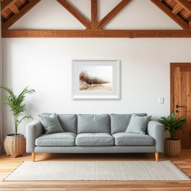 This artwork comes unframed without a mount or in a white, wooden chunky frame with a white double mount.