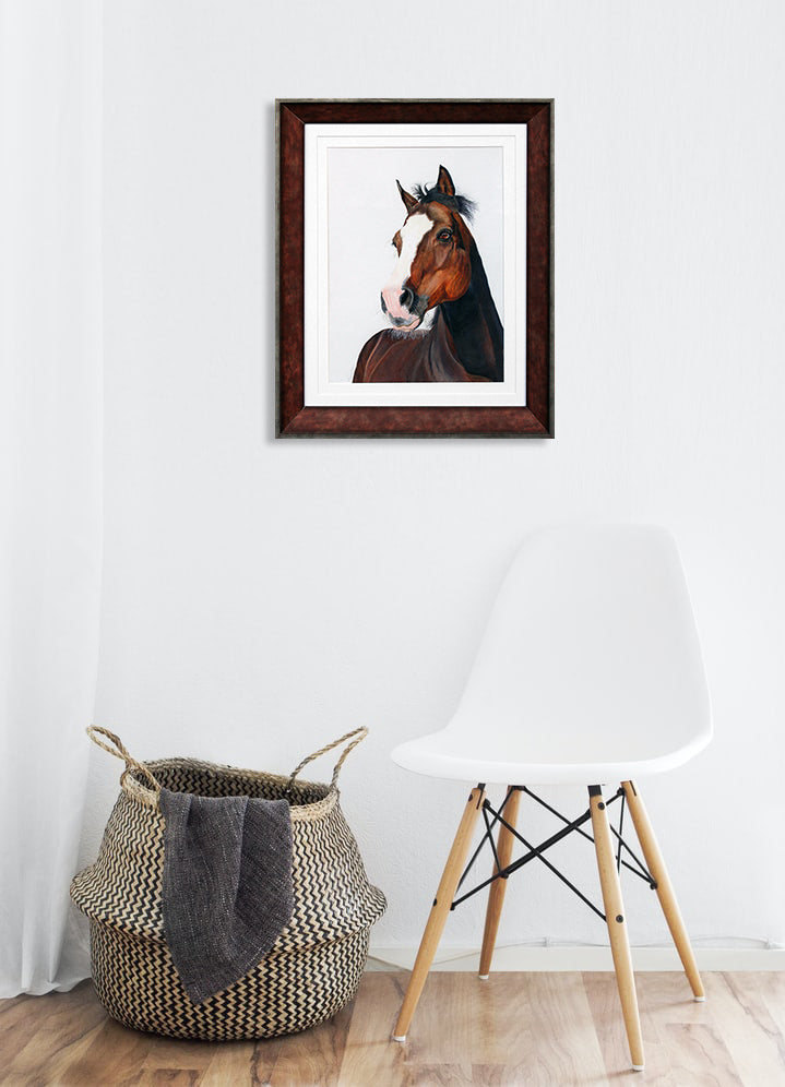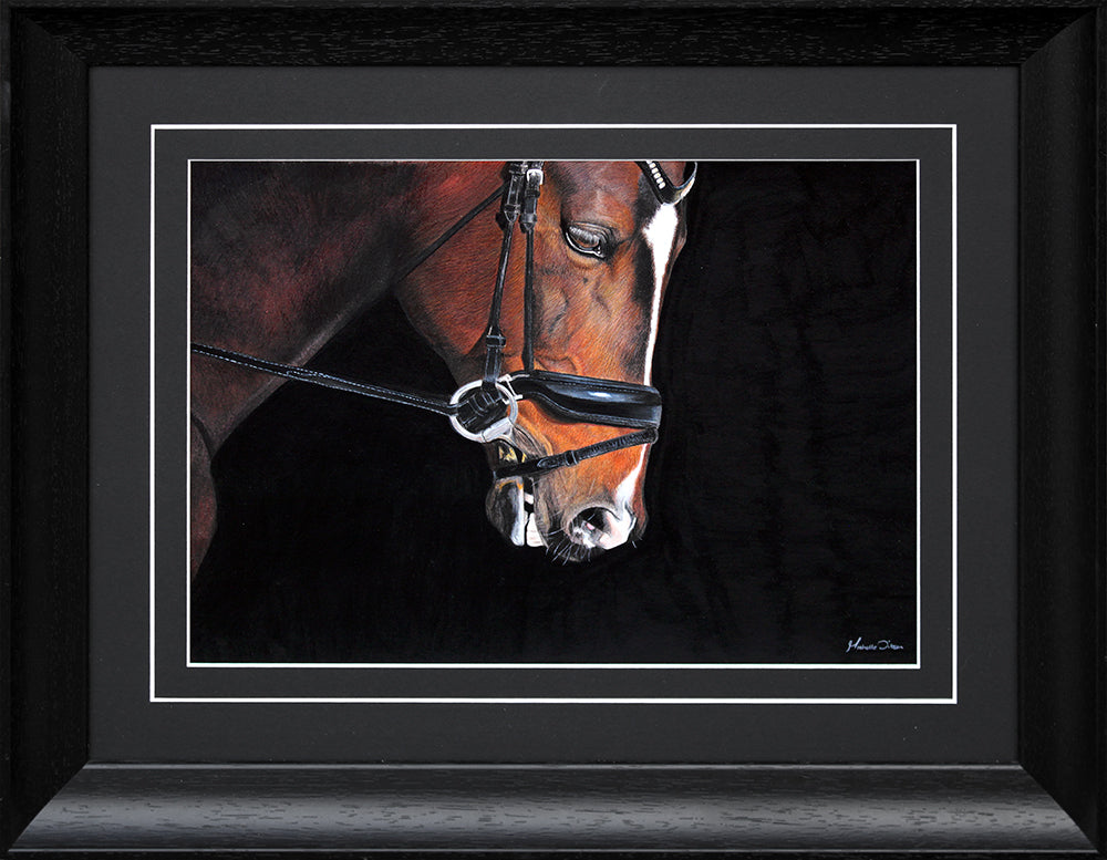 This artwork comes in a black, scoop wooden frame with black mount and glass.