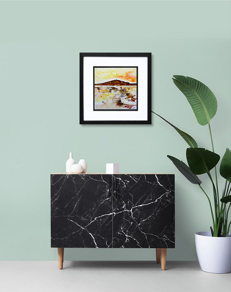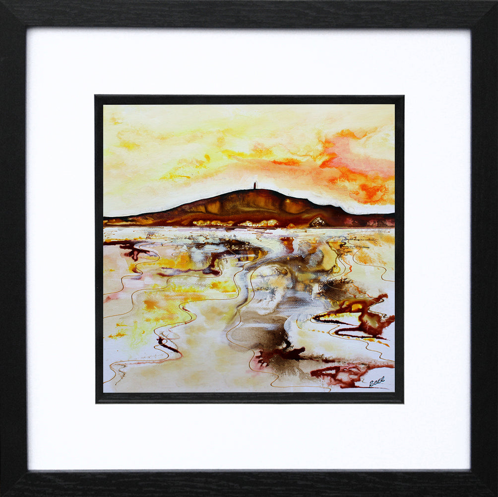 'Scrabo From Strangford' is a signed, original acrylic painting on canvas board by Gail Rider.