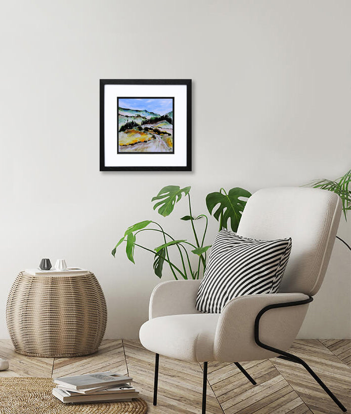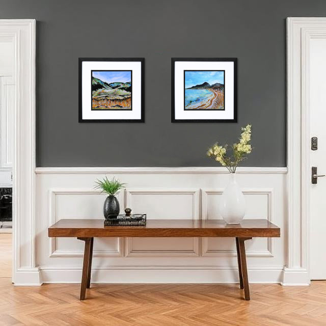 'Setting Off Through The Mournes' is a signed, original acrylic painting on canvas board by Gail Rider.