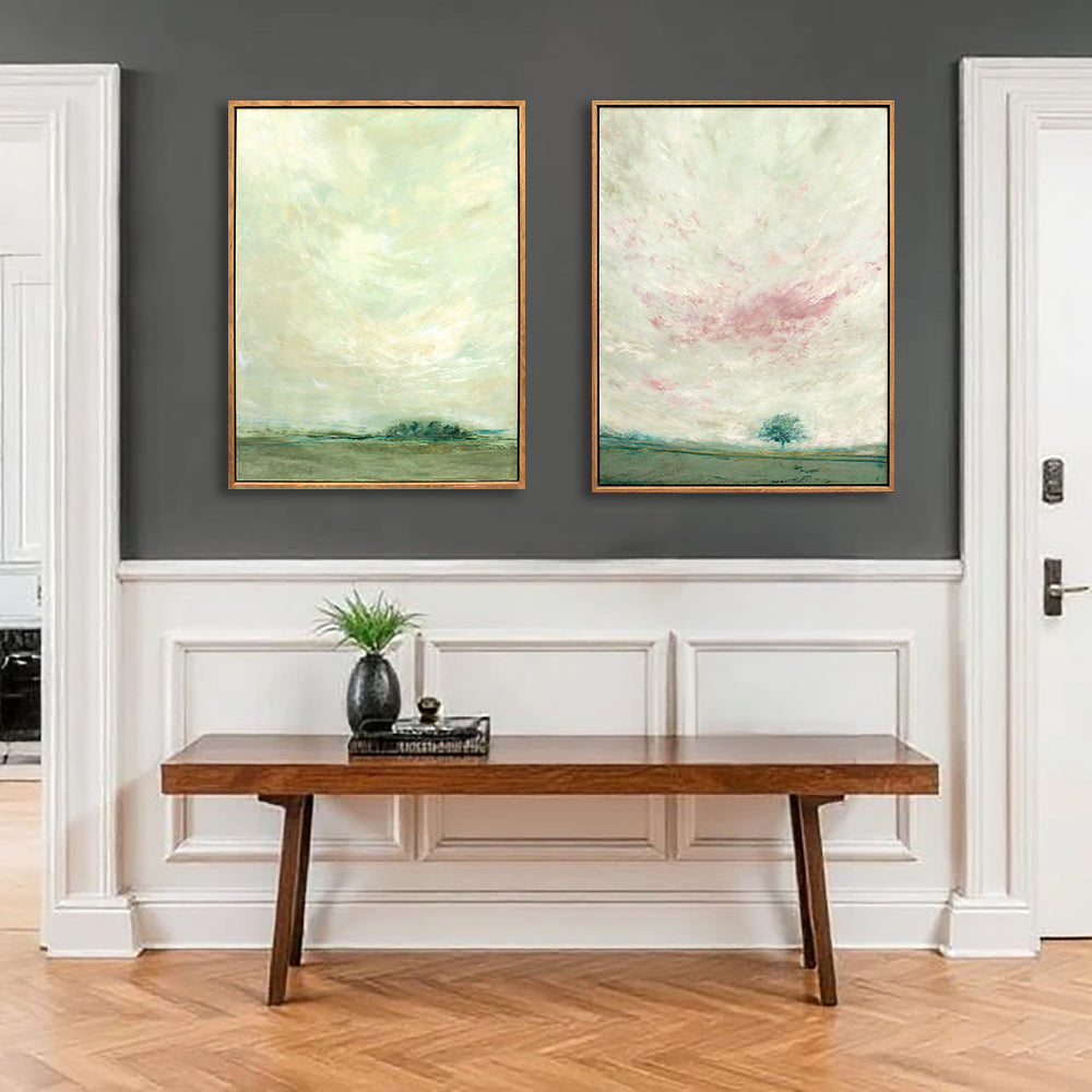 This artwork comes in a light wood tray frame.