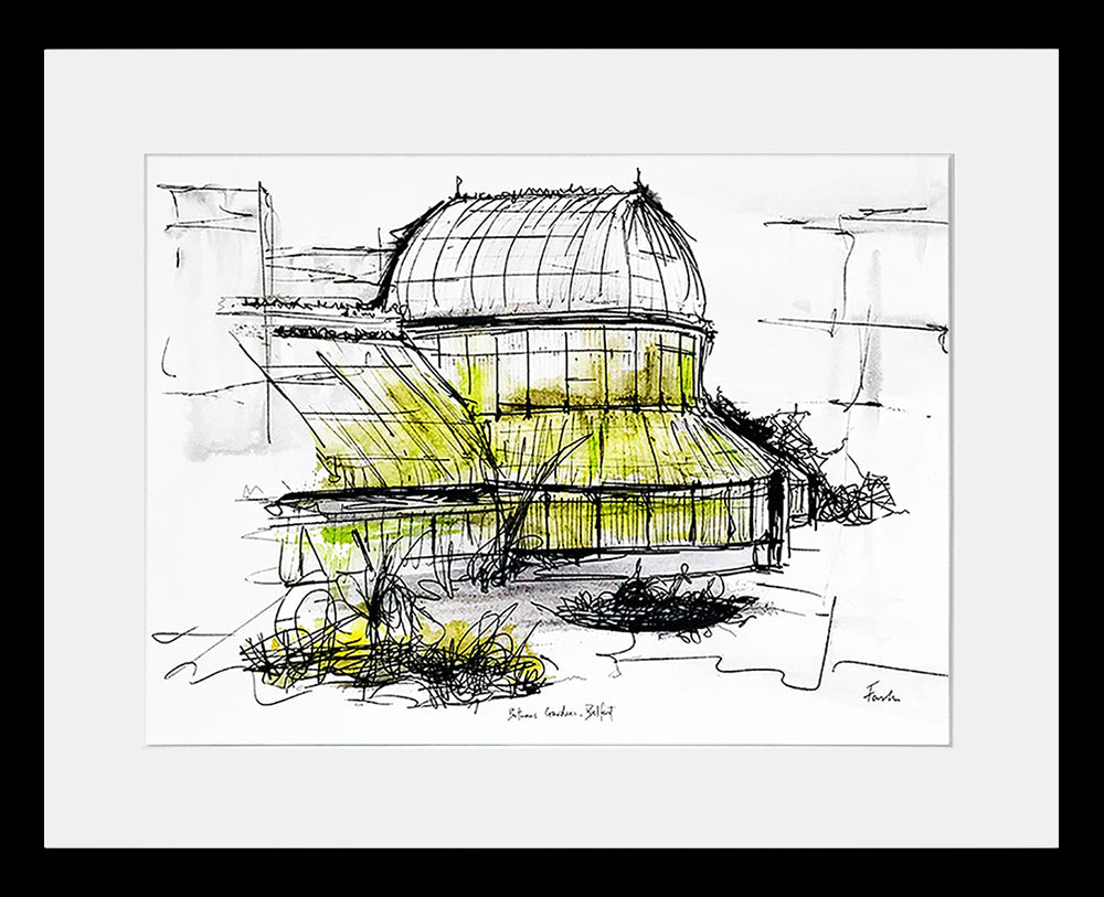 'Botanic Gardens, Belfast' by Stephen Farnan is a digitally signed, open edition print presented in a white single mount.