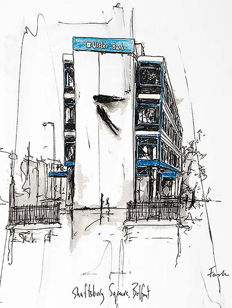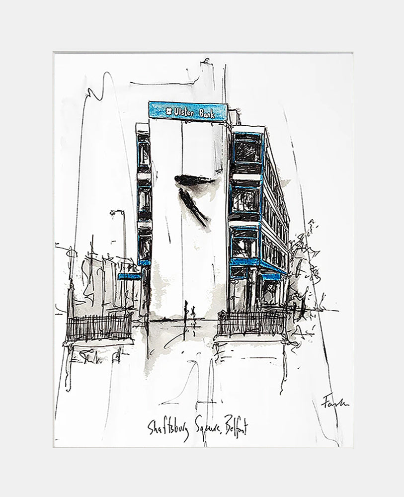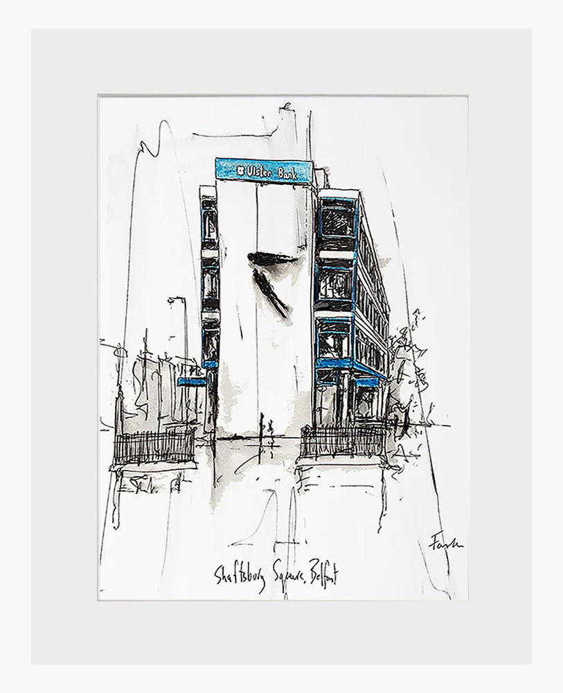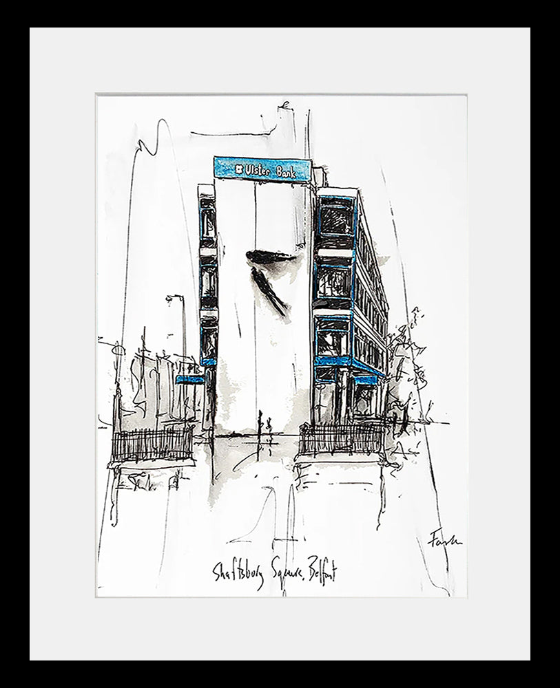 'Shaftesbury Square, Belfast' by Stephen Farnan is a digitally signed, open edition print presented in a white single mount.