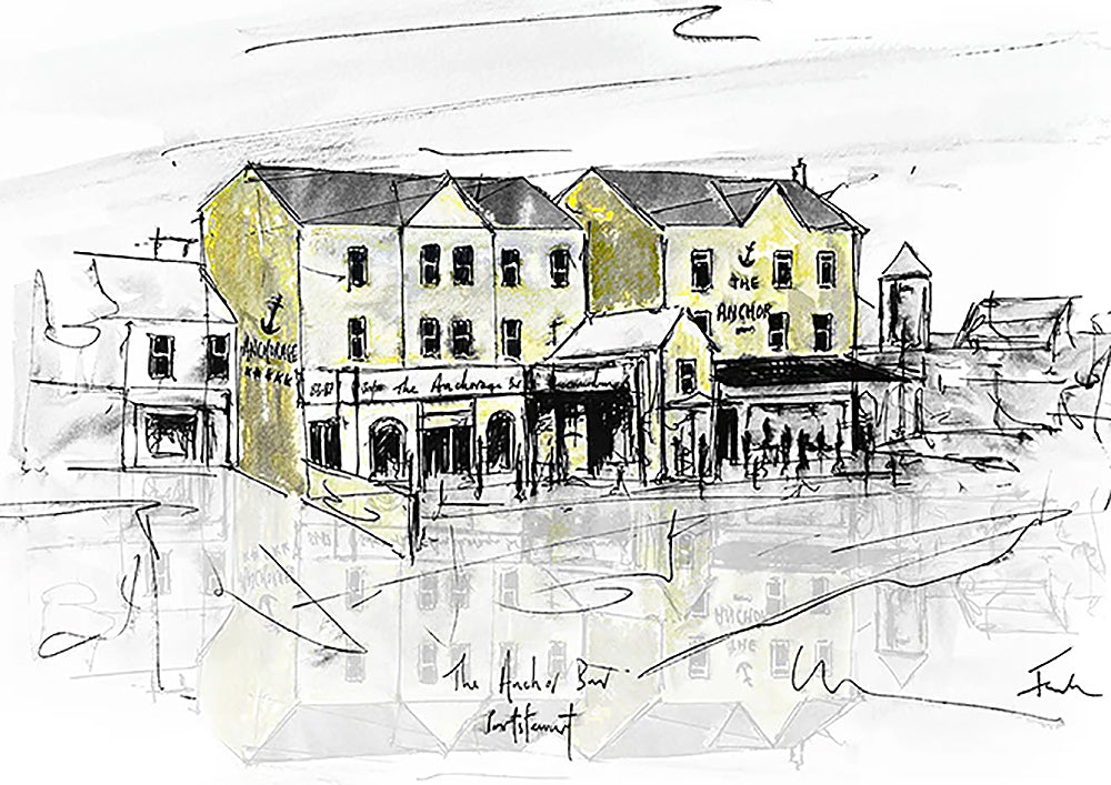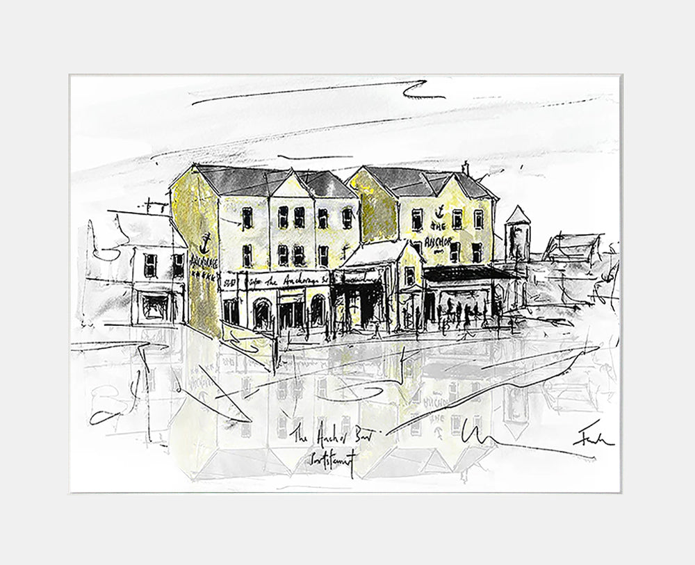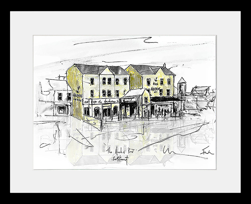 'The Anchor Bar, Portstewart' by Stephen Farnan is a digitally signed, open edition print presented in a white single mount.