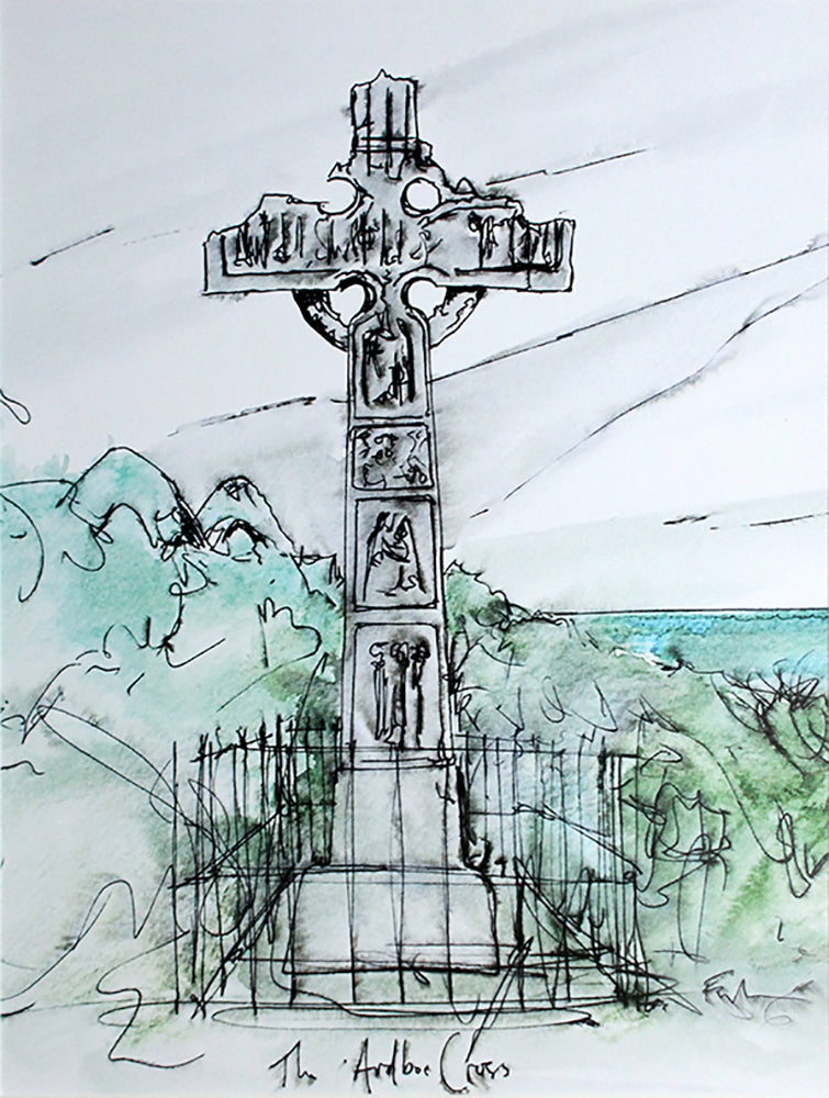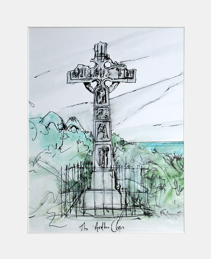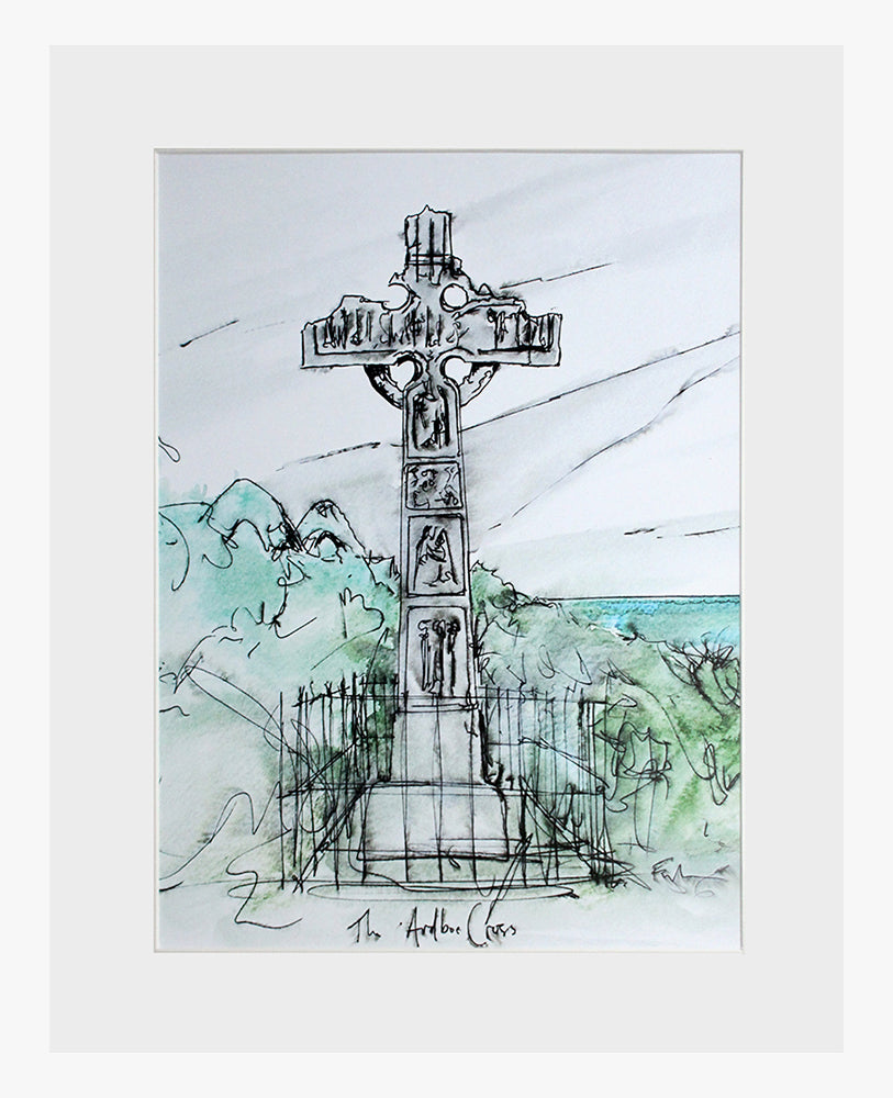 'The Ardboe Cross' by Stephen Farnan is a digitally signed, open edition print presented in a white single mount.