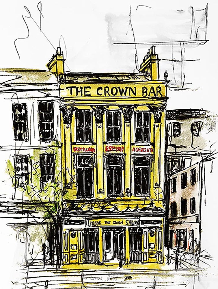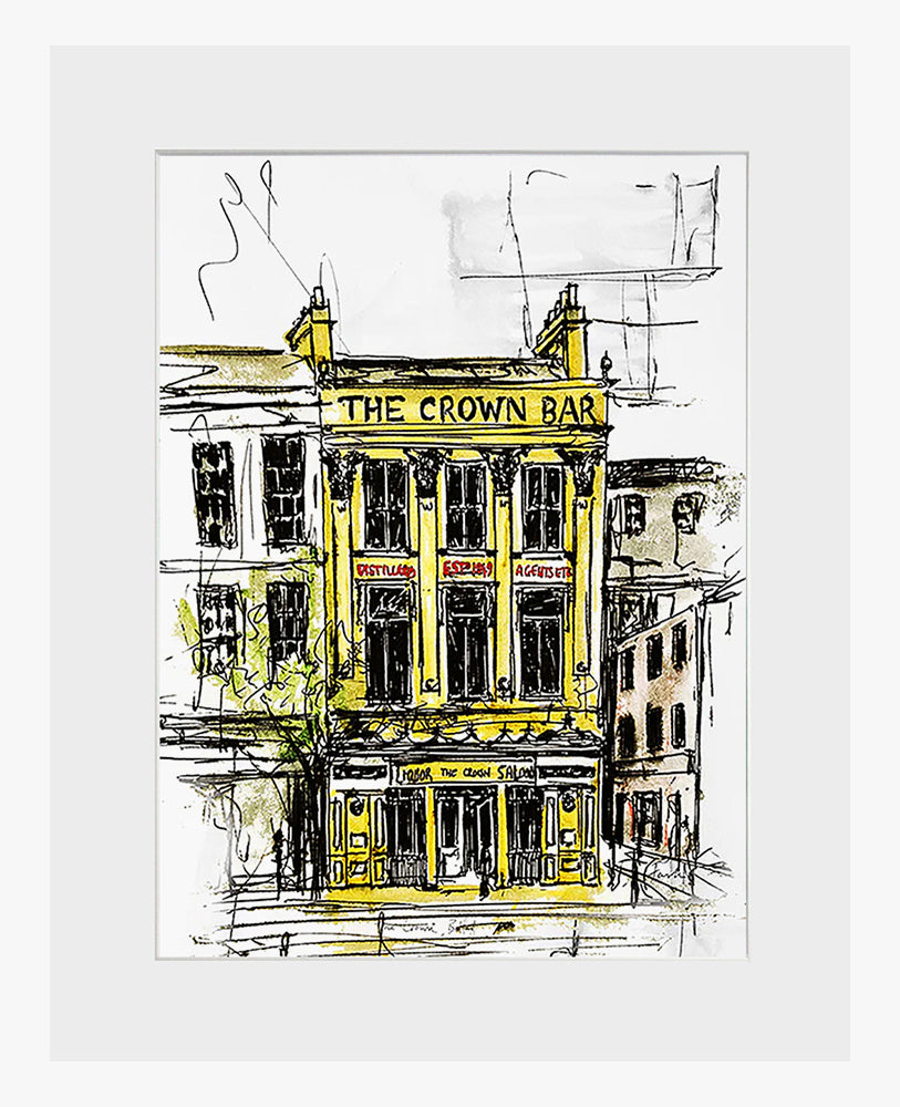 'The Crown, Belfast' by Stephen Farnan is a digitally signed, open edition print presented in a white single mount.