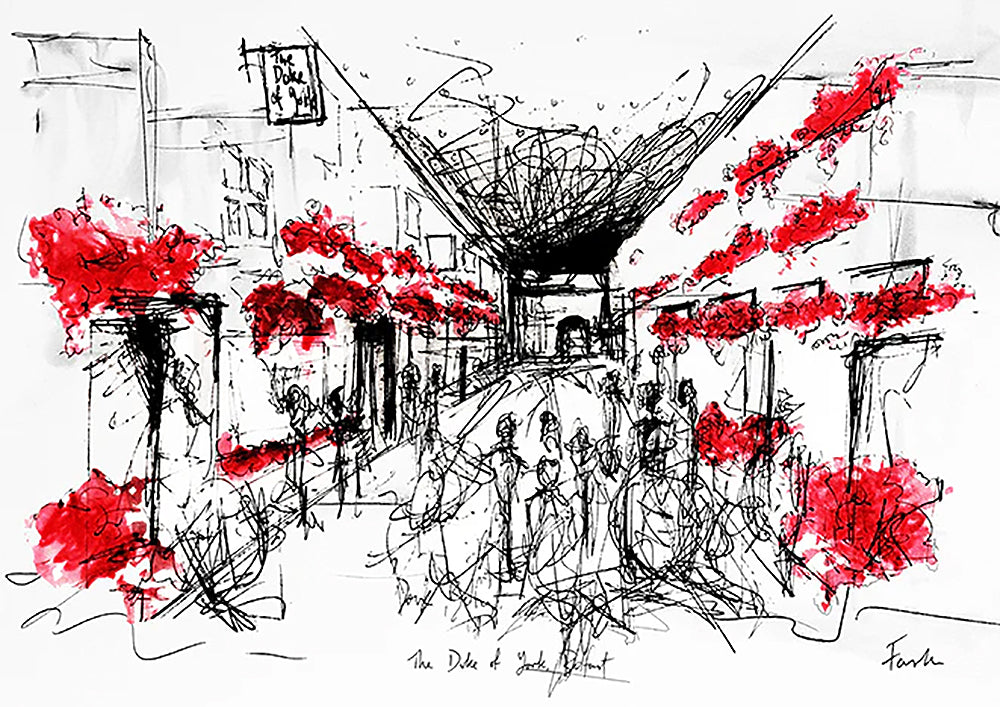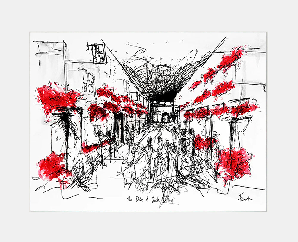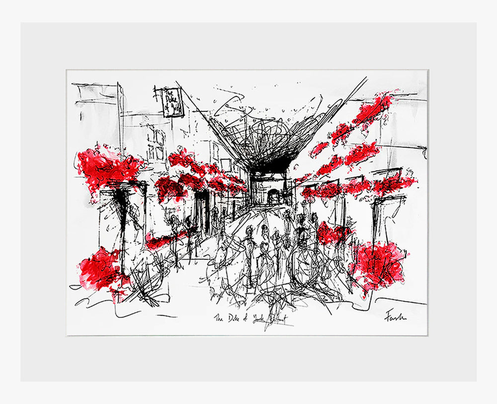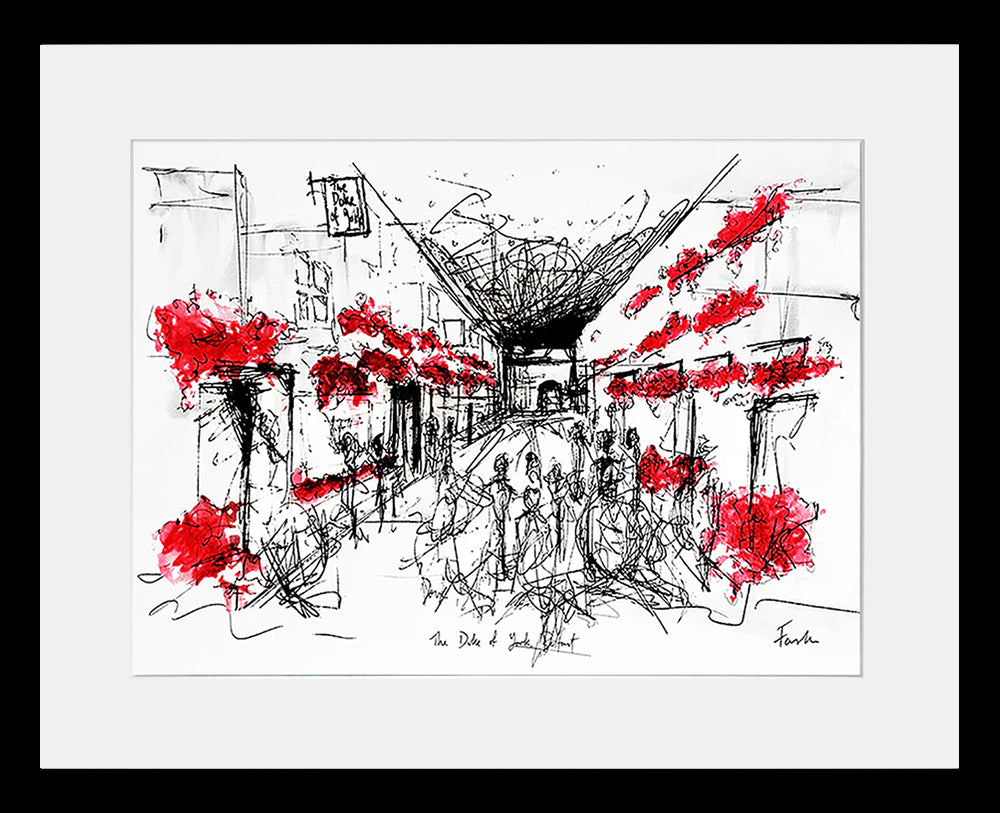 'The Duke Of York, Belfast' by Stephen Farnan is a digitally signed, open edition print presented in a white single mount.