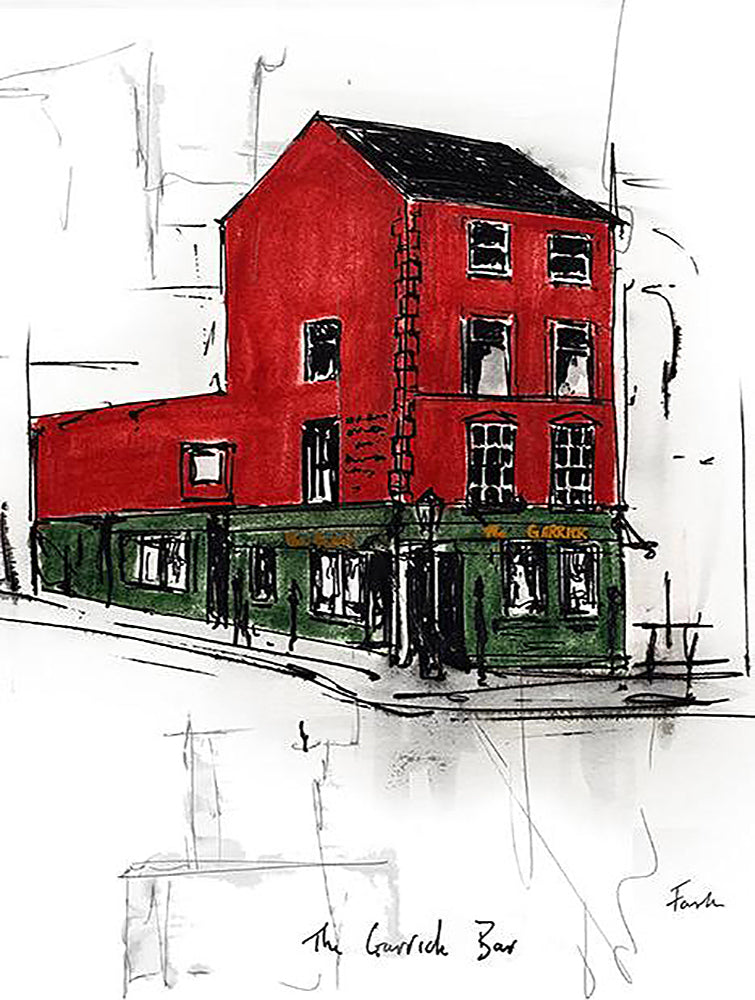 'The Garrick Bar, Belfast' by Stephen Farnan is a digitally signed, open edition print presented in a white single mount.