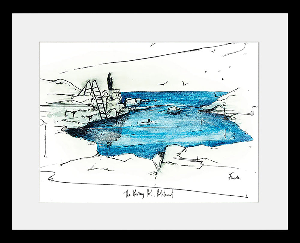 'The Herring Pool, Portstewart' by Stephen Farnan is a digitally signed, open edition print presented in a white single mount.