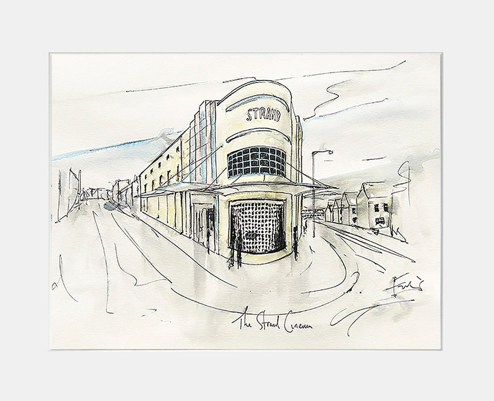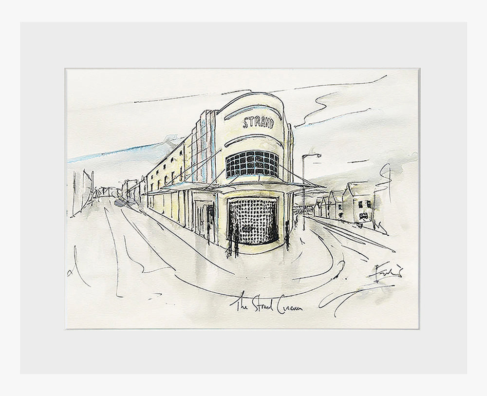 'The Strand Cinema' by Stephen Farnan is a digitally signed, open edition print presented in a white single mount.