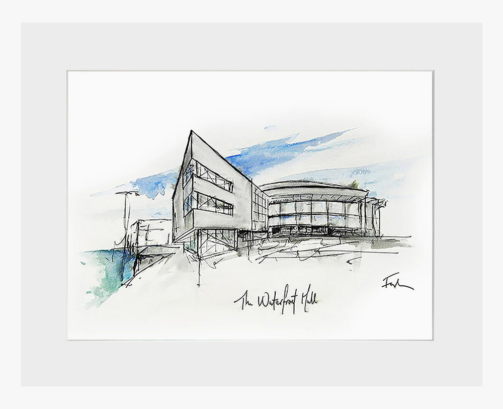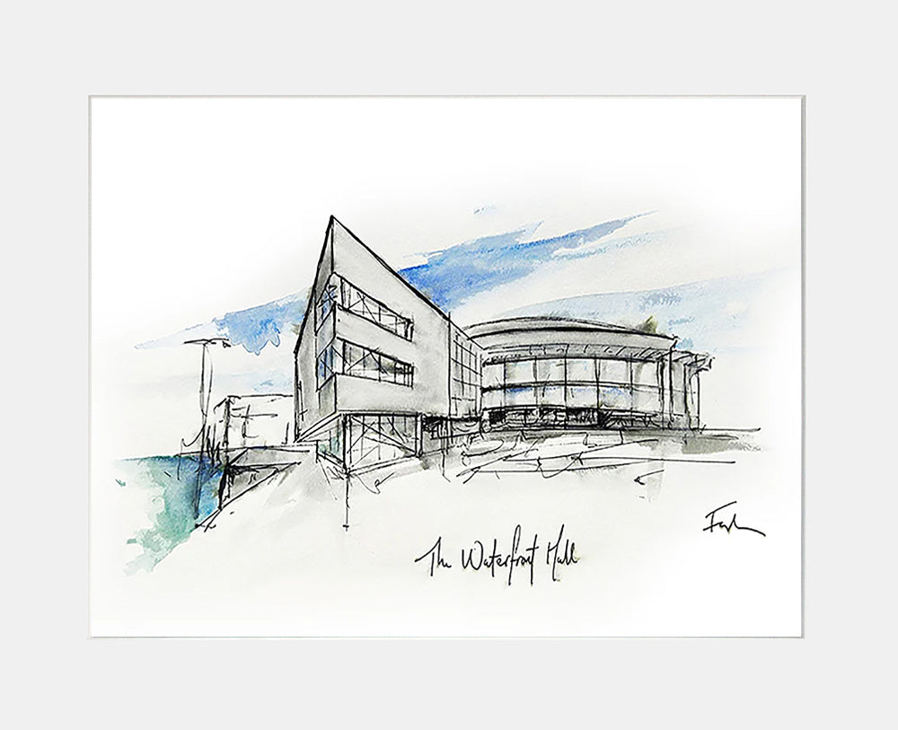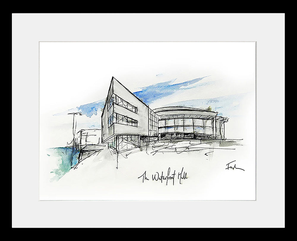 'The Waterfront Hall, Belfast' by Stephen Farnan is a digitally signed, open edition print presented in a white single mount.