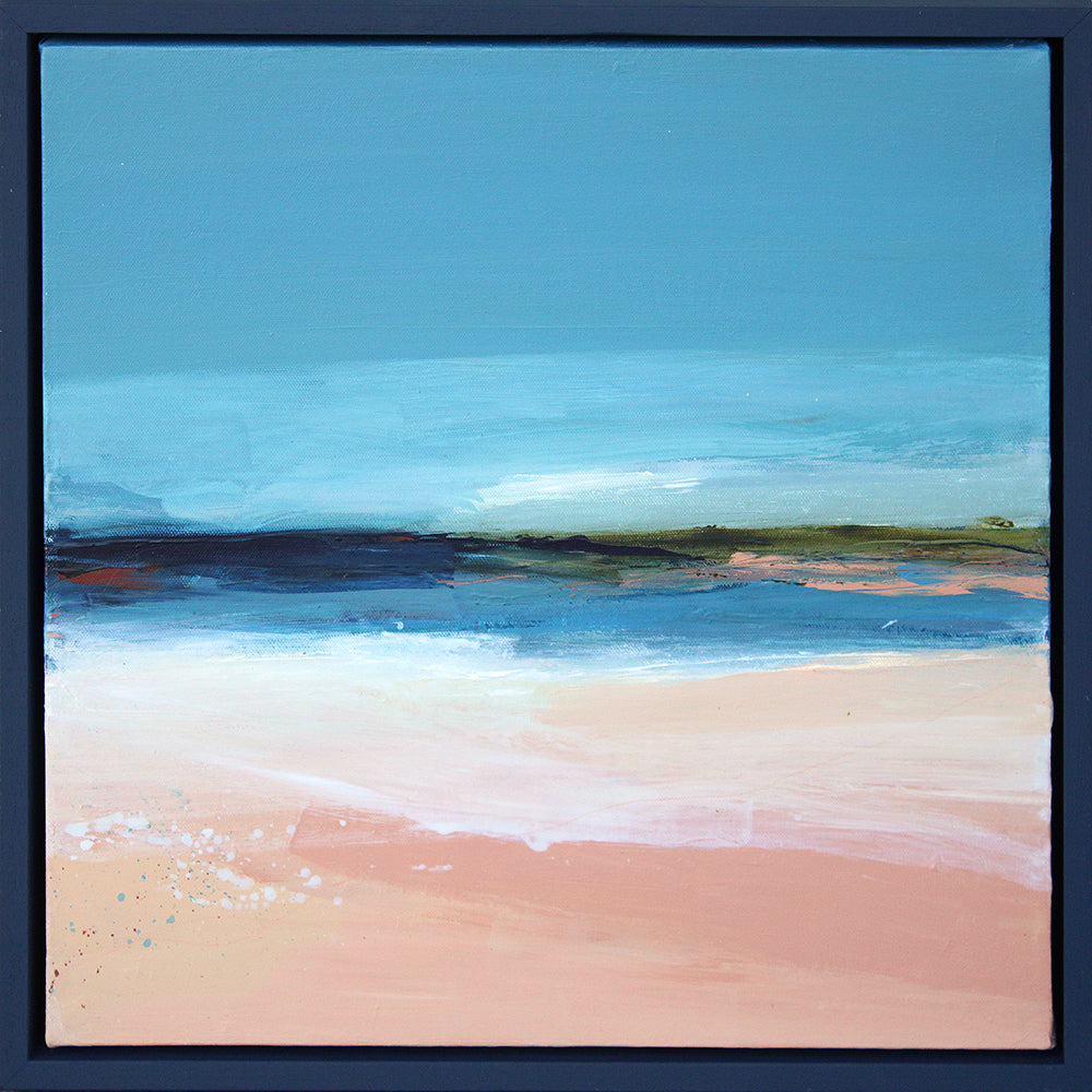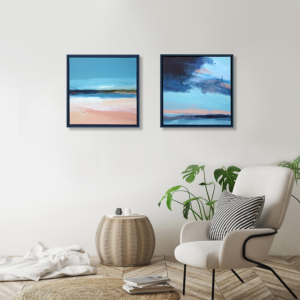 This artwork comes in a navy, wooden float frame.