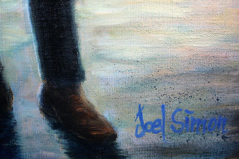 'Stepping Out' is a signed, original oil painting on canvas by Joel Simon.
