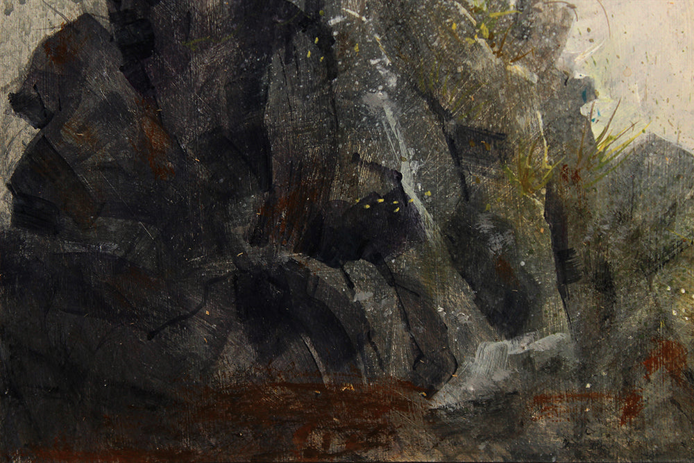 'Summer Mist At Orlock' is a signed, original, acrylic on board painting by Ray Belletty which was painted on location 'en plein air' in an impressionistic style.