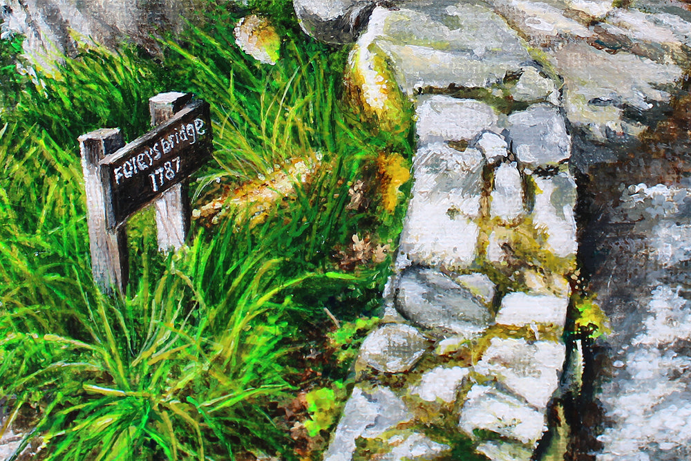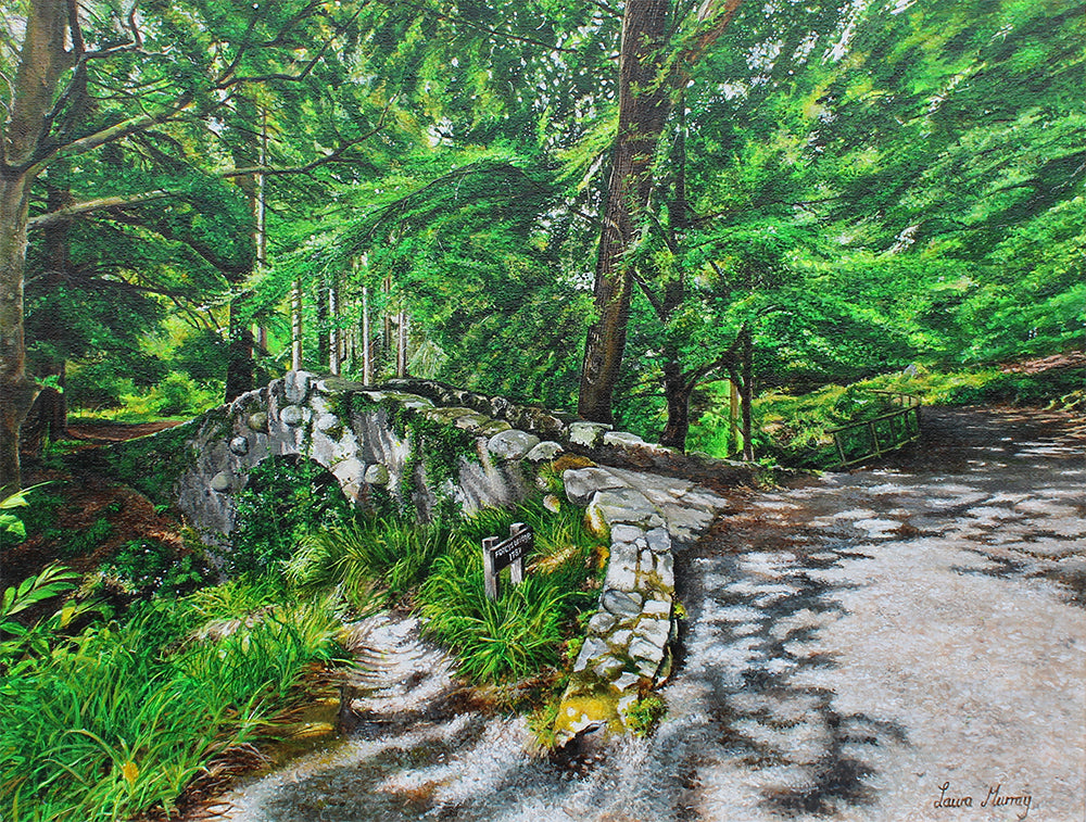 'Sunlight At Foley's Bridge' is a signed, original, acrylic on board painting by Laura Crawford.