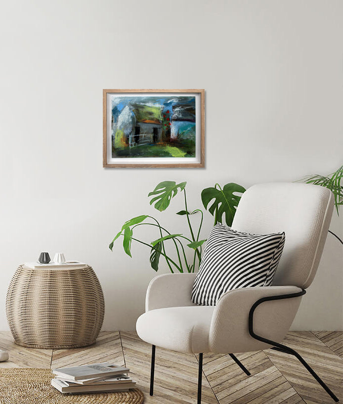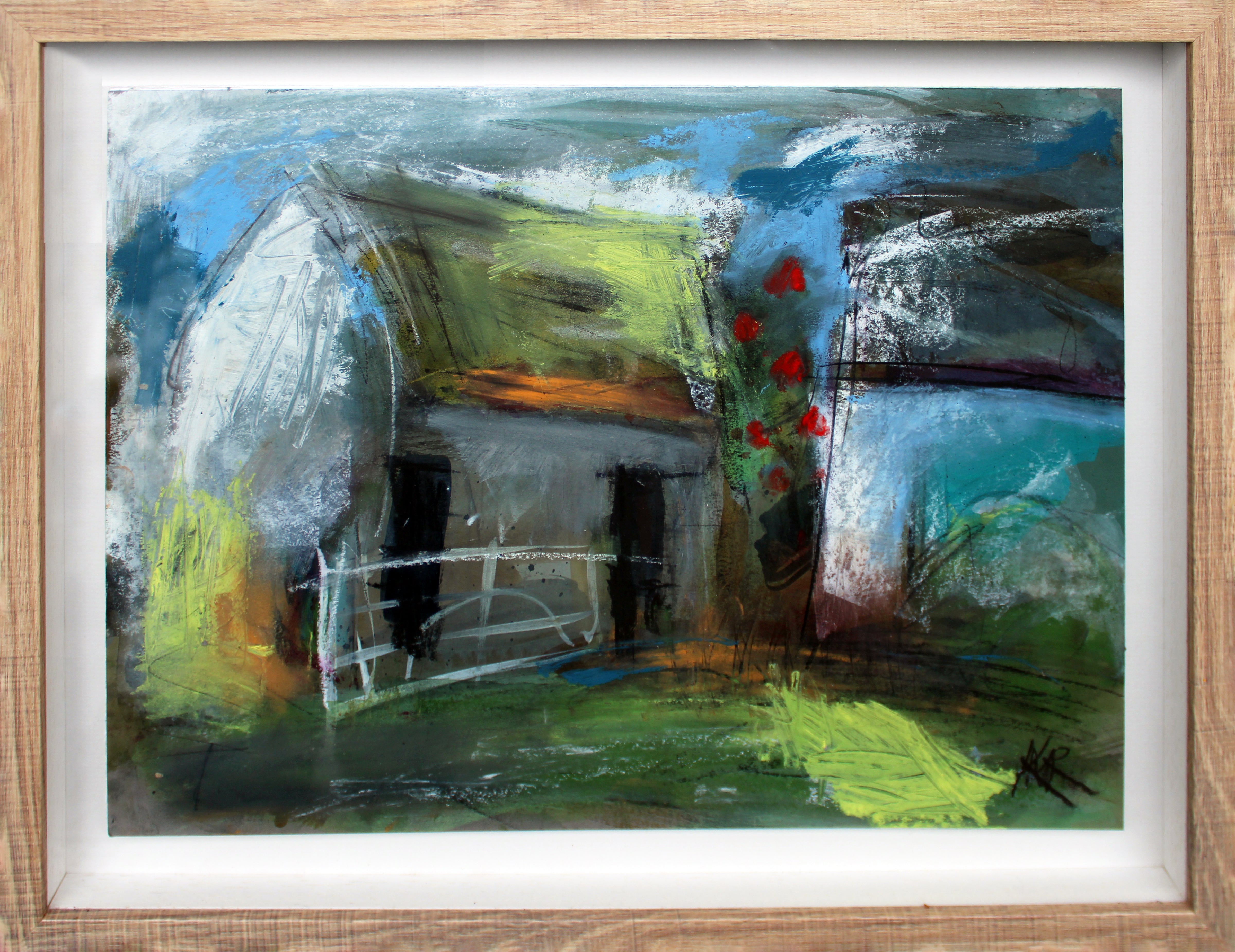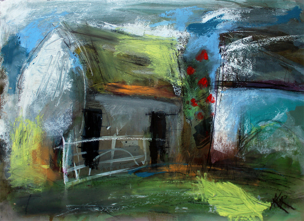 'Swinging Orchard Gate' is a signed, original mixed media painting by Kate Rebbeck.