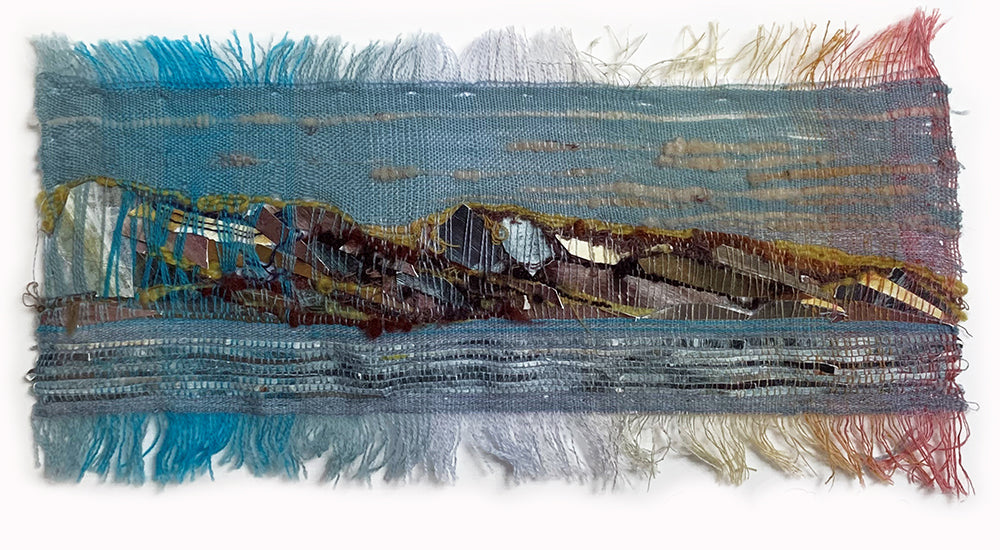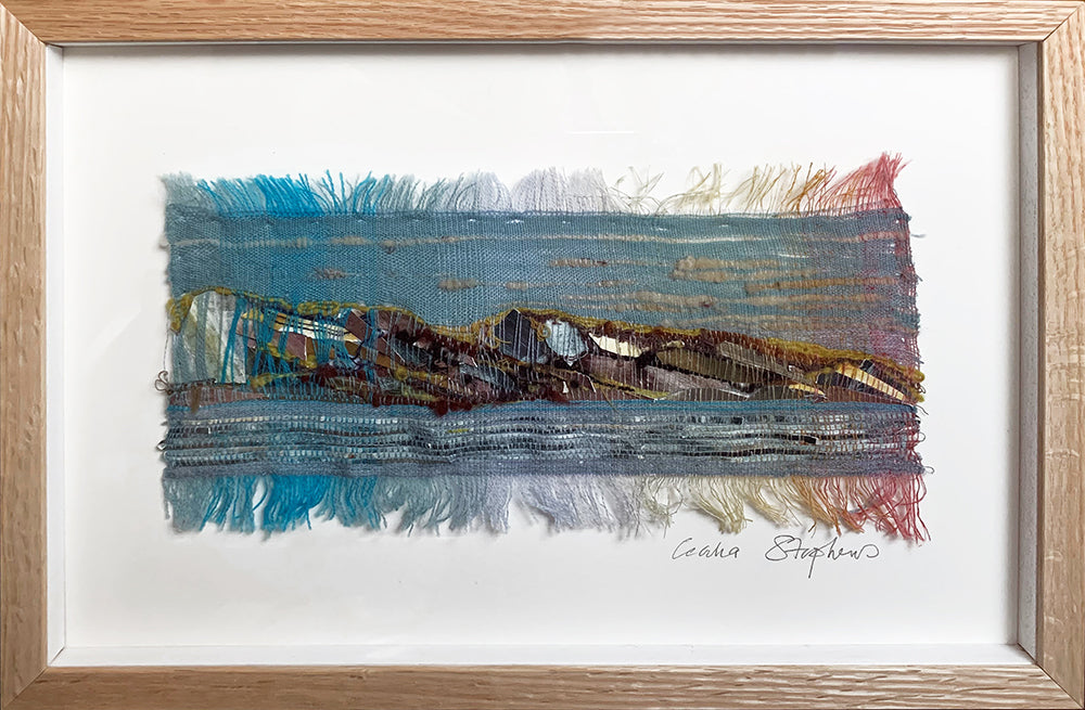 'Seeking The Land Shelter' is an original, hand coloured, woven tapestry by Cecilia Stephens.
