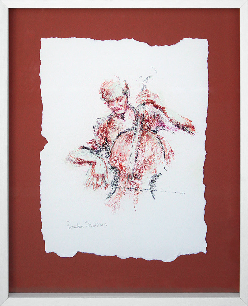 'The Celloist' is a signed, original, pastel drawing by Rosaleen Sanderson.
