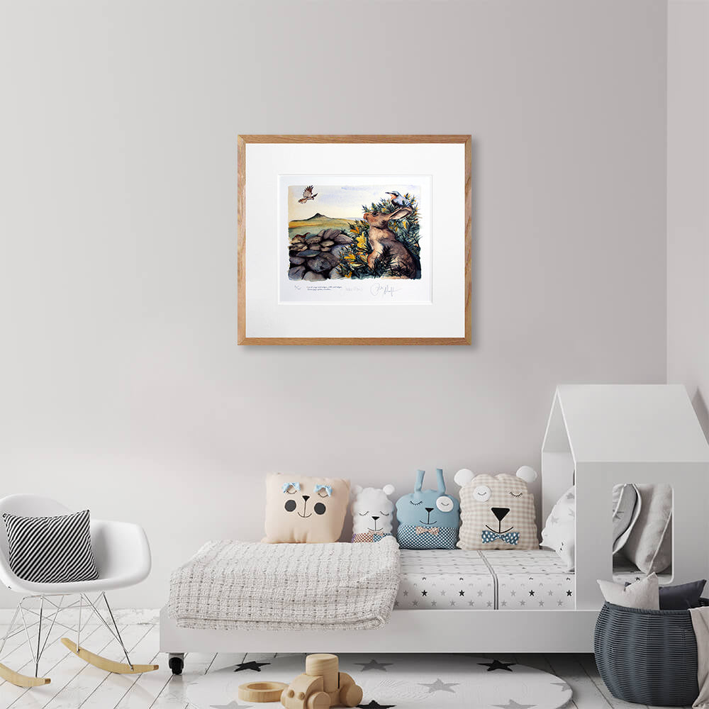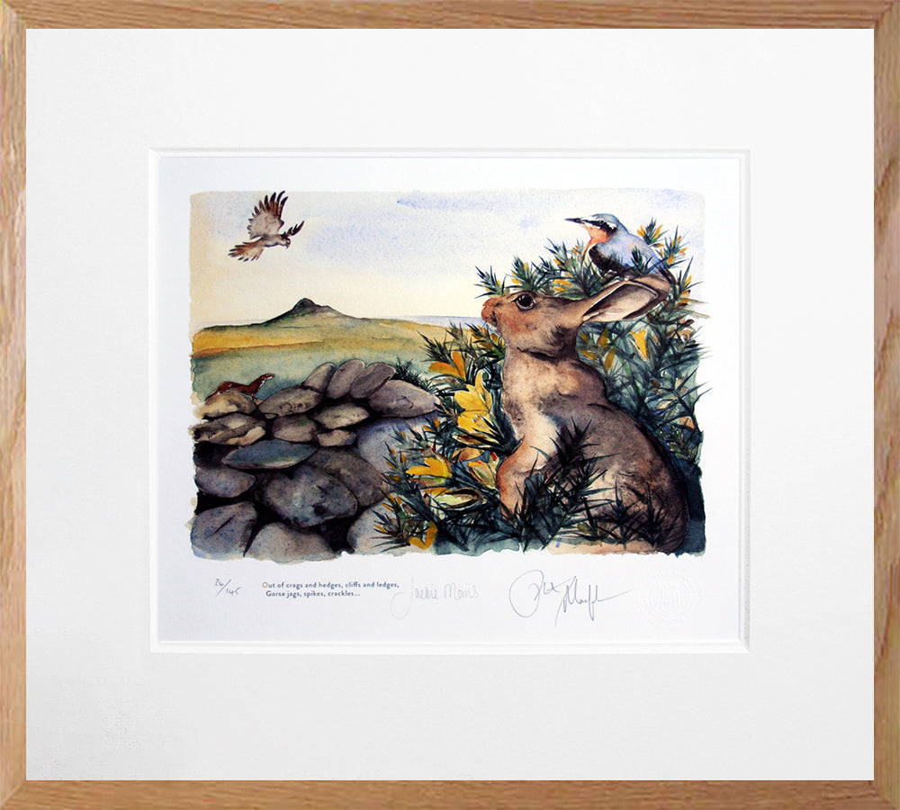 'Gorse' is a limited edition Giclee print of 145, from the book 'The Lost Spells', signed by both the author Robert Macfarlane and illustrator Jackie Morris. Printed on 315gsm 100% cotton rag archival paper, the print comes with a Certificate of Authenticity and is held in a white double mount.