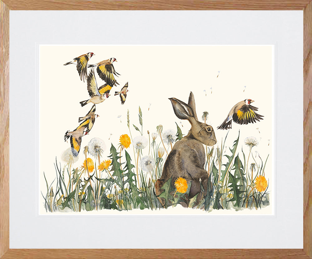 'Dandelion With Hare' is a limited edition Giclee print of 145, from the book 'The Lost Words', signed by both the author Robert Macfarlane and illustrator Jackie Morris. Printed on 300gsm Somerset velvet 100% cotton rag archival paper.
