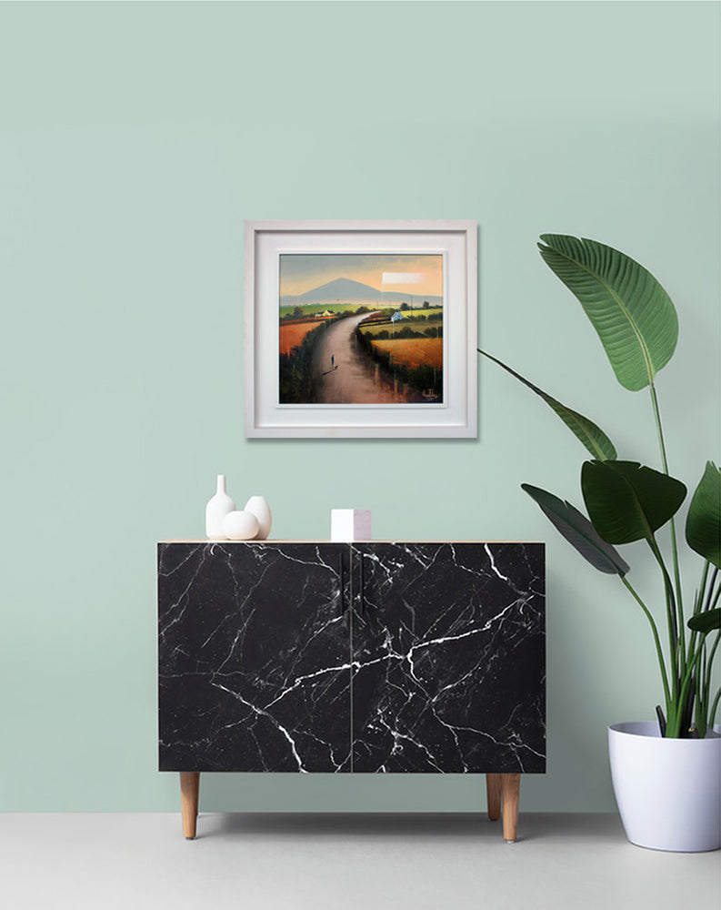 This artwork comes in a white wooden double frame.