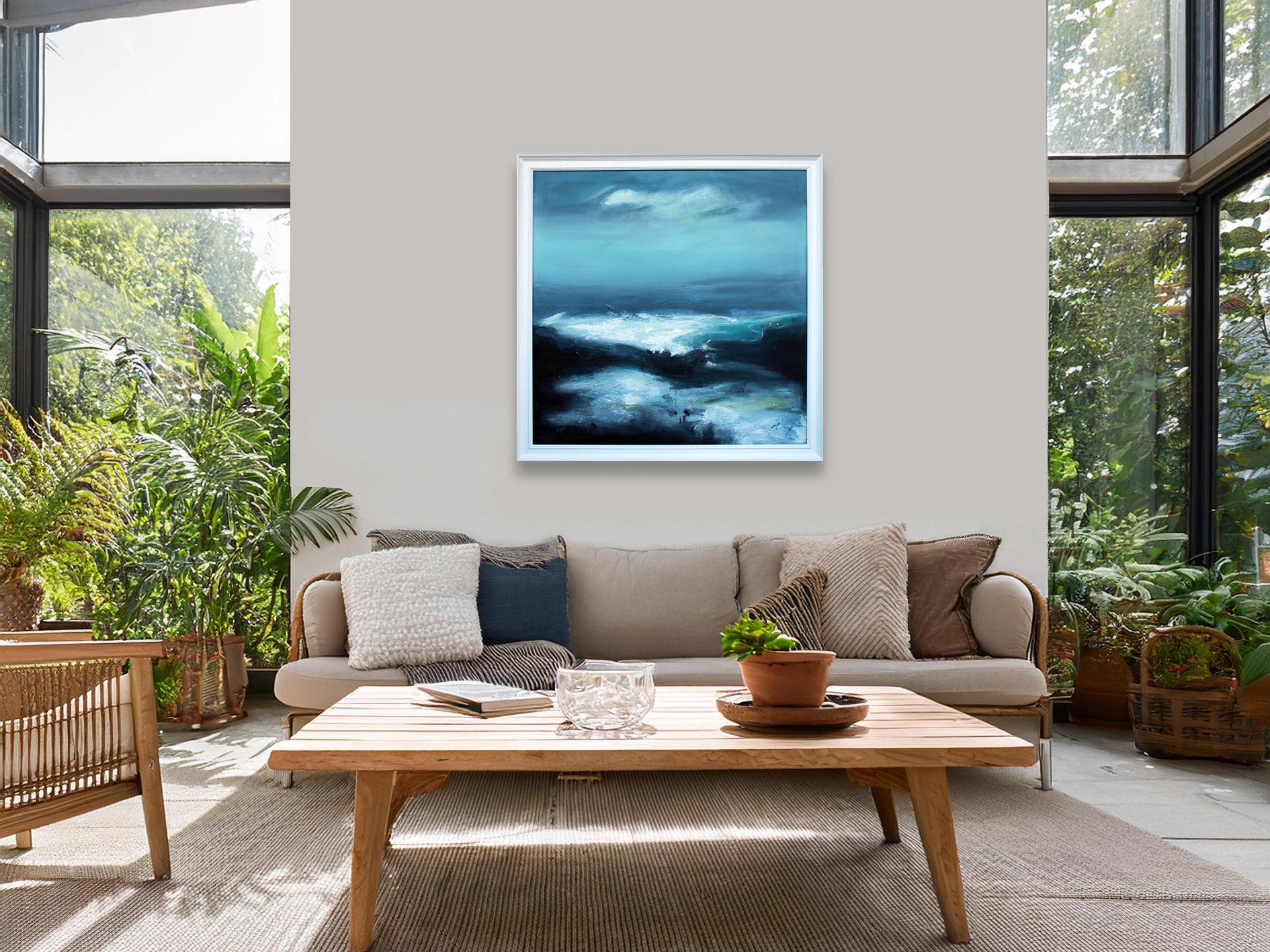 'Turquise Sea' is a signed, original, oil and acrylic painting on canvas by Maria Perry.
