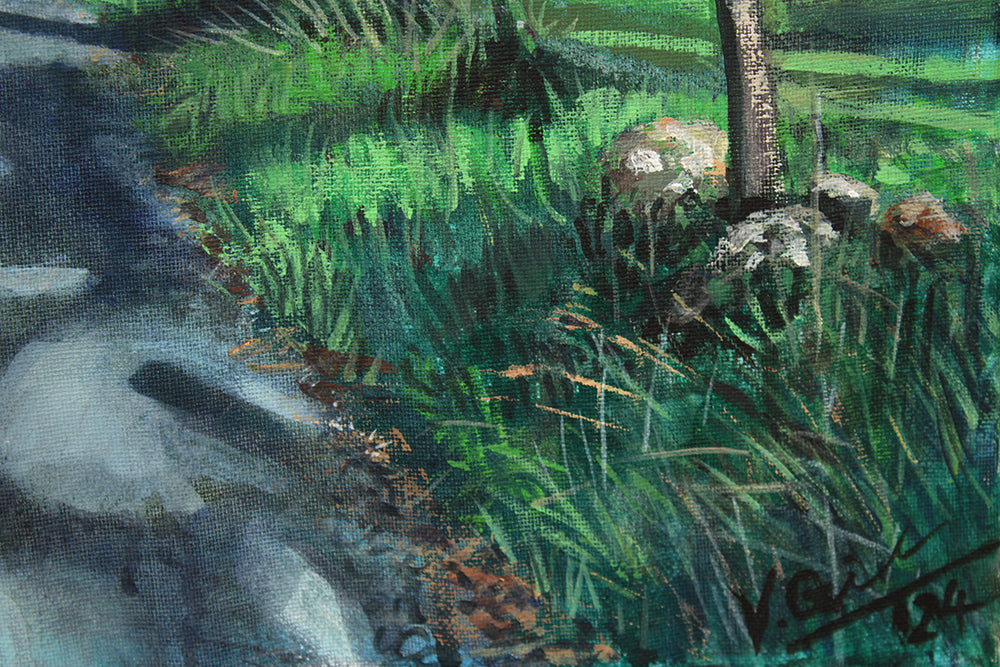 'View Of Moneyscalp Forest, Mournes' is a signed, original, acrylic painting on canvas by Valerie Giannandrea McKeag.