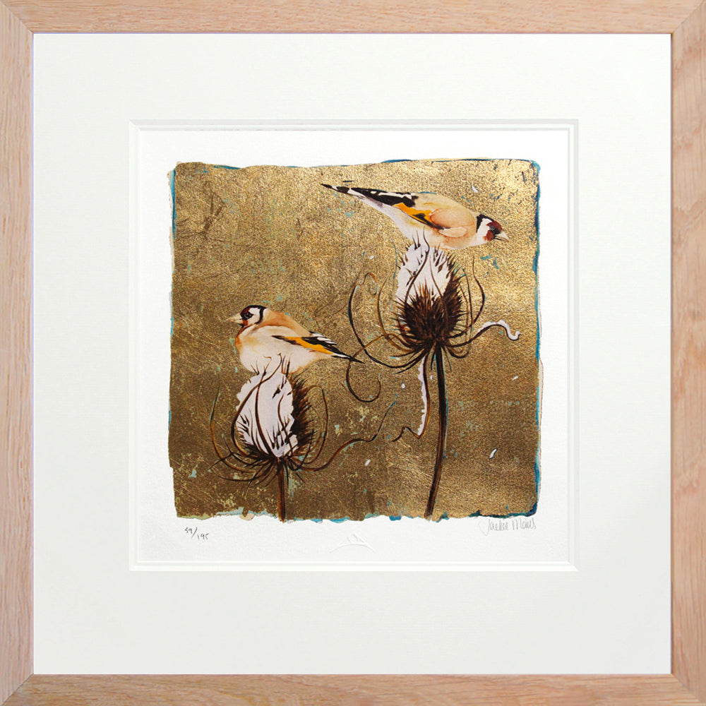 'Winter Teasels Artist Proof' is a limited edition giclee print of 195 signed by illustrator Jackie Morris. This Artist Proof (AP) print has hand applied 'gold' leaf and is printed onto 300gsm Canson Moulin du Roy 100% cotton rag paper It is presented in a double mount and comes with a Certificate of Authenticity.